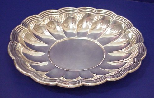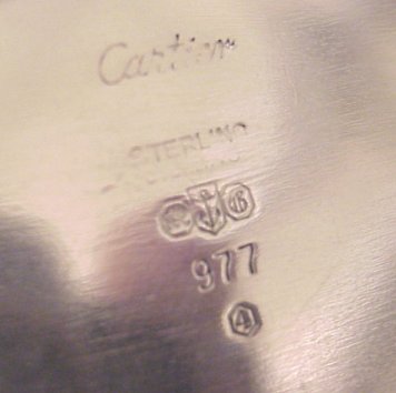 GORHAM FOR CARTIER STERLING BOWL: Impressive oval bowl with scalloped sides and tiered rim. Bears the Cartier name in script, Gorham hallmarks and 977, Sterling, and the Gorham date mark of 1964. 13 1/4''l. 1 3/4''h. Approx. 23.24 oz.