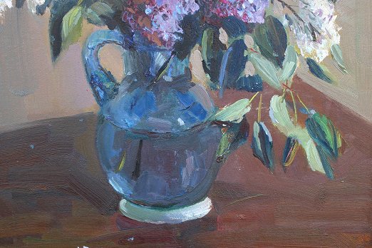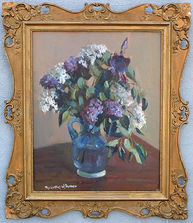 DUNBIER, Augustus William, (American, 1888-1977): ''Floral Still Life'', O/CB, 16'' x 20'', signed lower left, encased in gilt carved frame with wear, overpaint and missing gesso. Condition - Several small specks of paint loss, needs cleaning. Painting was acquired from a student and close personal friend of Dunbier.
