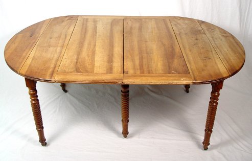 PINE COUNTRY FRENCH KITCHEN TABLE: 6 turned legs support 69'' oval top table (when the 9'' leaves are opened).