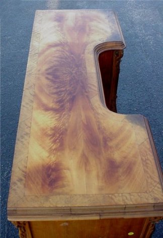 FRENCH ORMOLU BUREAU PLAT DESK: Satin and kingwood 3 drawer Bombay desk. Leather surface, edged in egg and dart ormolu molding. Ormolu sabots. 32 1/2''h. x 64'' x 34''. Surface wear.
