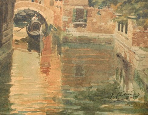 CADORIN, Ettore, (American, 1876-1952): Venetian canal scene, W/C, 18 1/4'' x 10 1/2'' sight size, signed lower right. Condition - Overall light staining, several spots in the sky.