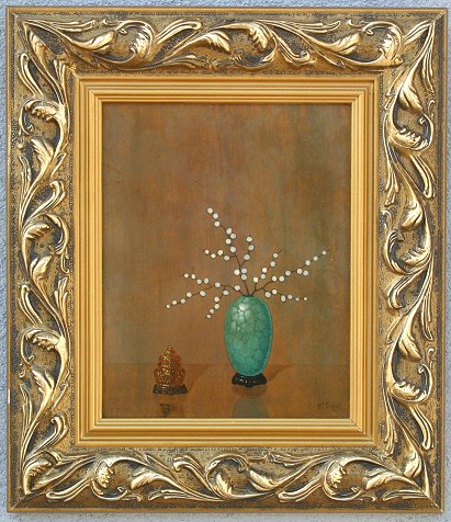 TORAN, Alfonso, (American, 1896-): Pair of Oriental still lifes, O/Masonite, 10'' x 8'', one is signed lower right and the other lower left, encased in later embossed gilded frames. Condition - Needs cleaning.