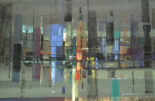 DOMAREKI, Joseph, (American, 1914-1988): Skyline city scene, W/C/Gouache, 14'' x 21 1/2'' sight size, signed lower right, encased in contemporary and gilded molding.