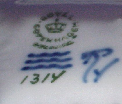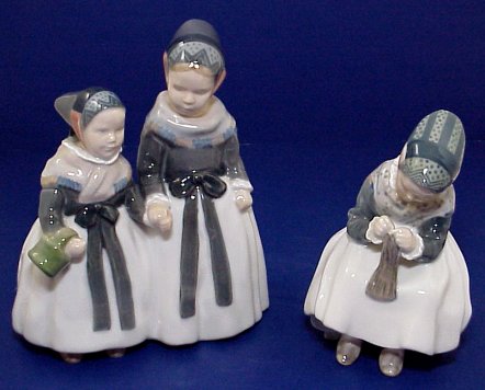 TWO ROYAL COPENHAGEN AMAGAR FIGURES: Figurines of girls in Amagar Danish national costume. One figure is 1316, ''Amagar Girls Shopping''7 1/2''h, x 6 1/2'' x 4''. The other figure is ''Amagar Girl Sewing'', #1314, 6'' x 4'' x 3''. No chips, cracks, or repairs.
