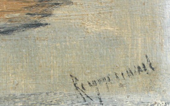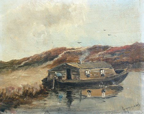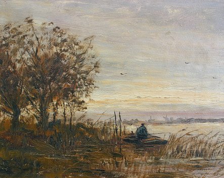 PAIR OF DUTCH? O/CB PAINTINGS: One depicts a tugboat and canal and the other a lone fisherman, 8'' x 10'', the first is signed illegibly lower right, both are unframed. Condition - Both pictures need cleaning.
