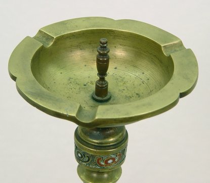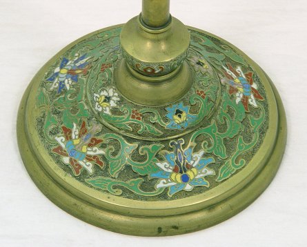 CHINESE BRASS CHAMPLEVE SMOKE STAND: 30''h. brass stand with 11'' dia. champleve base. Est. $100/150**
