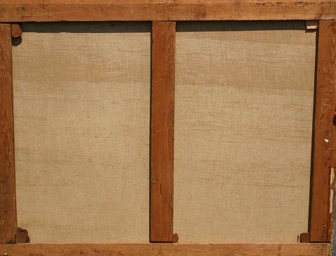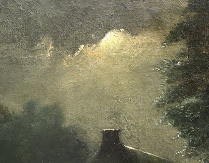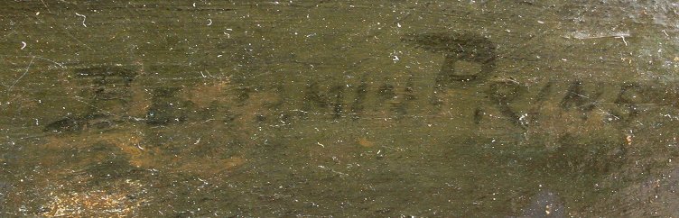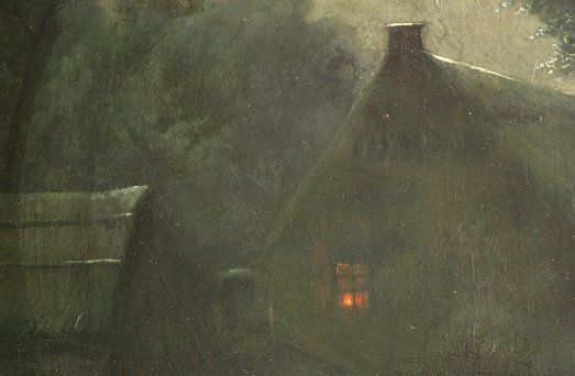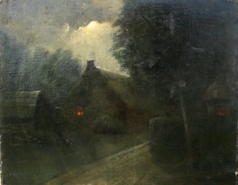 PRINS, Benjamin (Att), (Dutch, 1860-1934): Nocturnal moonlit village landscape, O/C, 31 1/2'' x 40'', bears signature at lower right, encased in a later gilded molding with wear and gilt loss, 37'' x 45 1/2'', painting has been re-lined with several puncture repairs and in-painting throughout, needs cleaning.