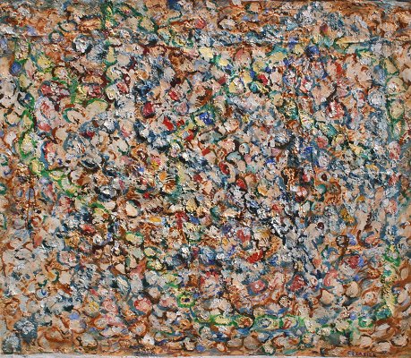 CORASICK, William, (American, 1907-): Abstract composition, O/C, 41 1/2'' x 50'', signed lower right. Condition - As a result of the very heavily applied paint, there is some scattered paint loss upon close inspection. Corasick exhibited widely at the PAFA and NAB.