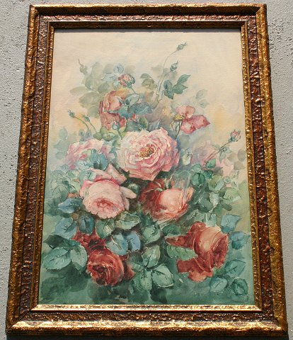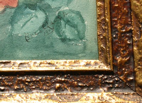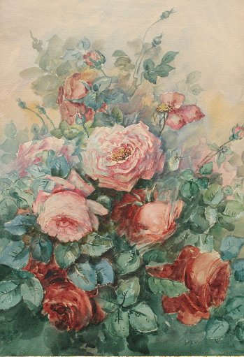 TURN OF THE CENTURY FLORAL STILL LIFE OF ROSES W/C: 21 3/4'' x 15'', signed lower right ''Breitlauch?'', dated 1904, encased in period embossed gilded gesso molding. Condition - Some light staining in upper middle portion.