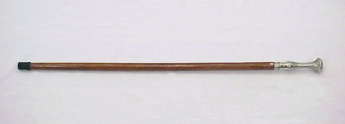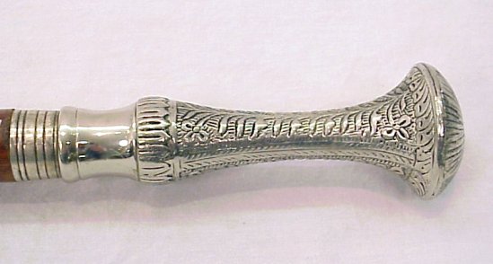 EMBOSSED SILVER HANDLE WALKING STICK: 39''L. overall, the silver end is 7''l.
