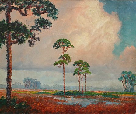 AMICO, (American, 20th C): ''Florida Everglades'', O/C, 25'' x 30'', signed lower left. Condition - Several scrapes with small puncture in right margin, paint flaking in lower left corner and upper right corner, sporadic paint flake and scrapes throughout, needs cleaning.