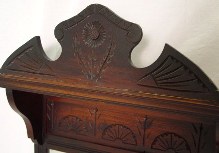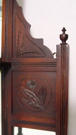 MAHOGANY INCISED CARVED MIRRORED MANTLE SHELF: Also can be used as a backsplash. 47''h, 43''w. One corner has a chip of wood chipped.