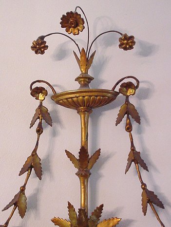 OVAL GILT WOOD MIRROR: With urn crest and floral garland swags. 43''h, overall. Looking glass is 16 1/2'' x 22 1/2''.