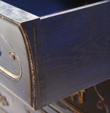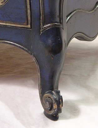 BLUE PAINTED FRENCH STYLE CHEST OF DRAWERS: Bombay chest of two half drawers over two full length drawers, 33''h, x 39 1/2'' x 22''. Age or wood unknown.