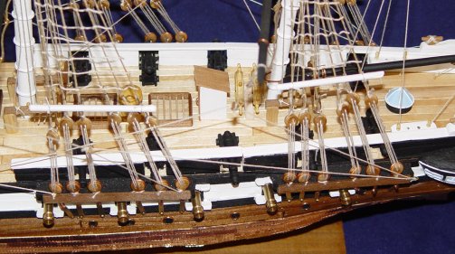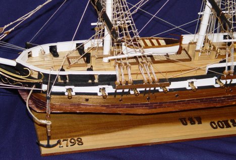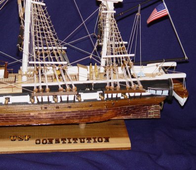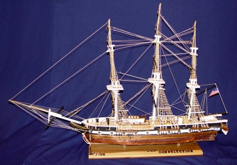 INTRICATE MODEL OF THE ''USF CONSTITUTION 1798'': A highly detailed hand crafted ship model, NOT from a kit, built from scratch by a retired Navy man. Constructed from wood, copper and string. 24''h, 36''l (tip to tip).