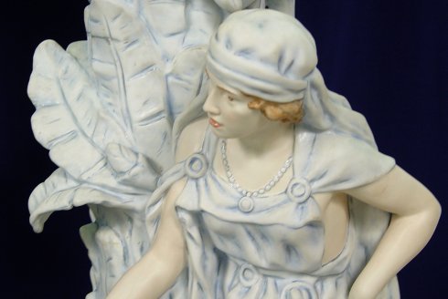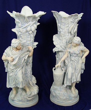 PAIR OF LARGE ROYAL DUX FLOOR VASES: Complimenting man and woman figures, pink triangle mark. Please note professional restoration. 37''h. Est. $1200/1400**
