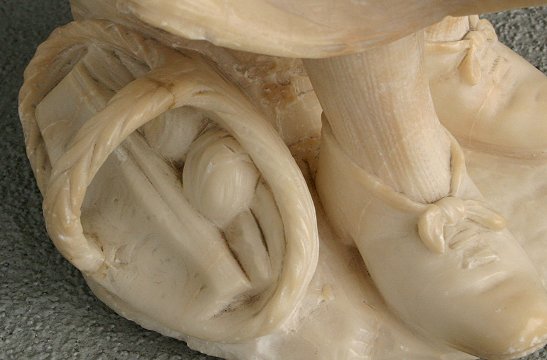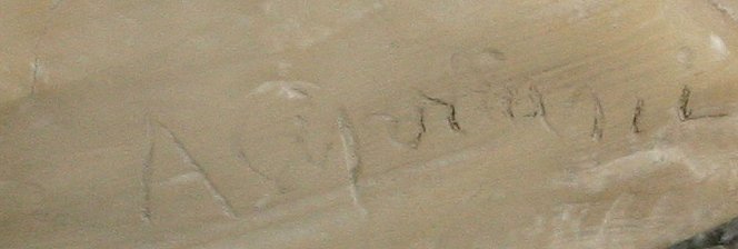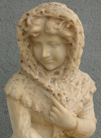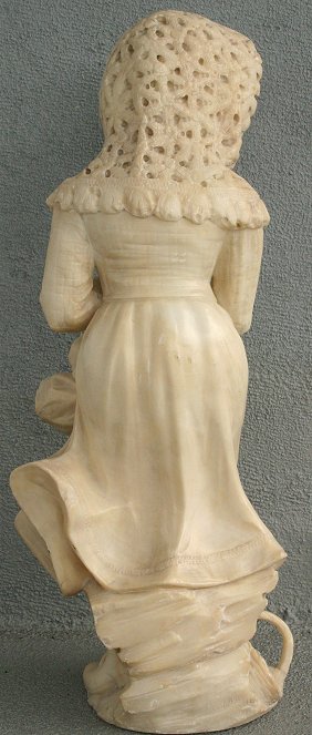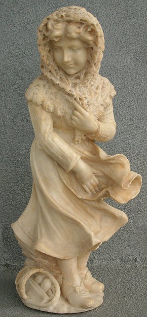 CIPRIANI, A., (Italian, 19th/20th C): Sculpture of young peasant child draped in shawl with basket at feet, Marble, 24 1/4''h, signed on the base. Condition - Several chips on the lower portion of her apron as well as to the base and billowing coat, repair to basket handle.