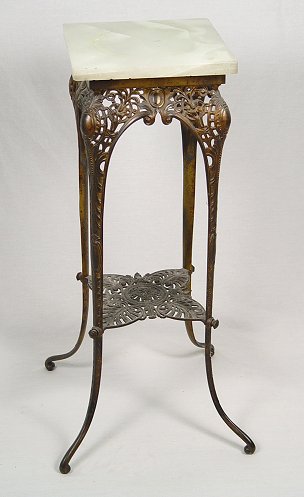 BRADLEY & HUBBARD ONYX TOP STAND: Two tiers, Signed B&H on the cross support under the onyx. 11'' x 11'' x 31''