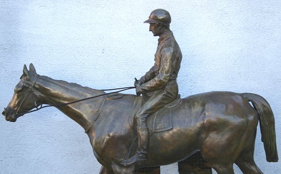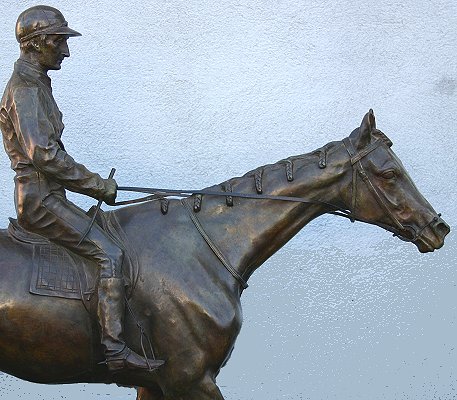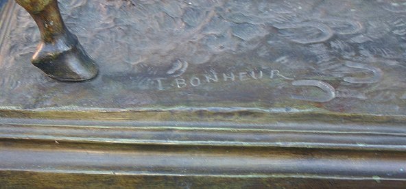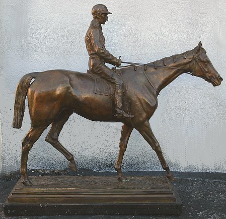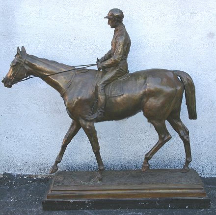 BONHEUR, Isidore, (French, 1827-1901): ''Horse and Jockey'', Bronze, 28 1/4'' height, affixed to black marble plinth, some minor flea bite flecks to marble base, signed on the base of bronze, wonderful brown green patina, slight bend to the whip. This is a casting done roughly around 1900. Est. $5000/8000**