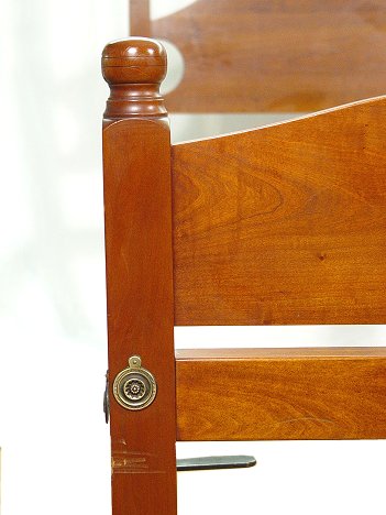 ELDRED WHEELER LOW POSTER BED: Hand crafted in Hingham Mass., in the workshops of Eldred Wheeler. Cherry? wood. The head posts are 46''h, foot posts are 30''h. Queen size.