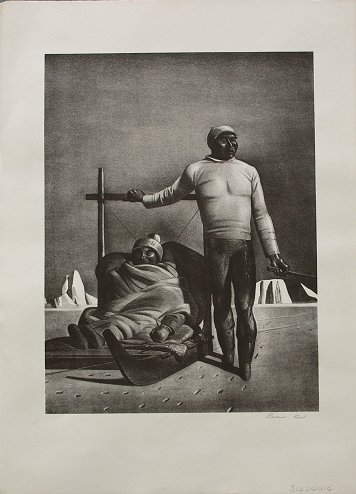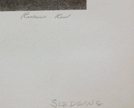 KENT, Rockwell, (American, 1882-1971): ''Sledging'', Lithograph, with full margins, 15 3/4'' x 11 1/2'', pencil signed lower right, also, titled in pencil lower right, on rives paper, watermark visible lower left, print is in near mint condition, unframed.