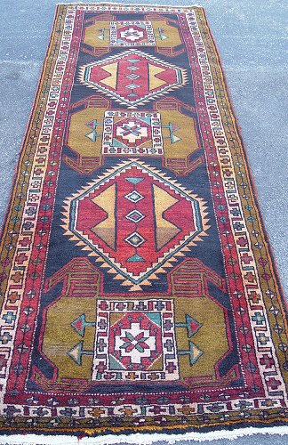 HAND KNOTTED FINE KAZAK RUNNER: Approx. 10'4'' x 3'5'', 100% pure wool.