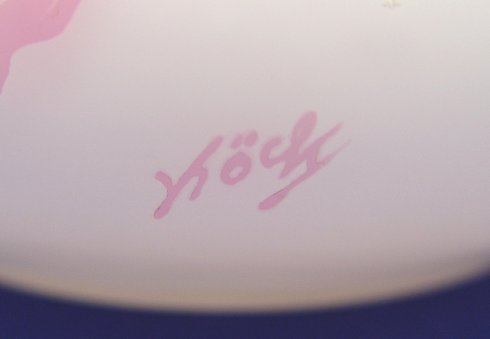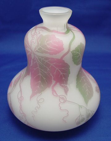 MAX KOCK (Koeck) CAMEO ART GLASS VASE: Gourd shaped, Green and pink cut to white. Signed in cameo ''Kock''. 7 1/2''h.