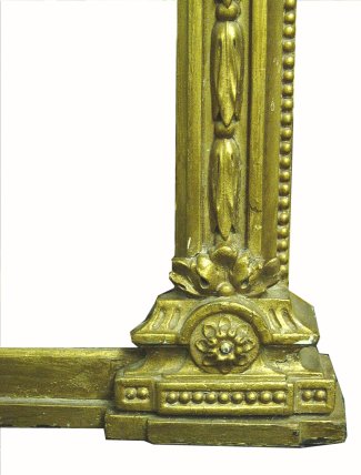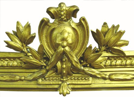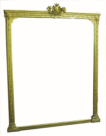 FIVE FOOT TALL, 19TH C. VICTORIAN GILT GESSO FRAMED MIRROR: Carved crest, chamfered panels to the back. 50''w.