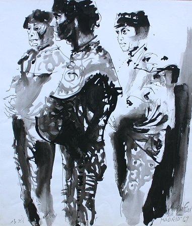 GAT, Moshe, (Israeli, 1935-): ''Matadors'', Pen & Ink with W/C, 14 1/2'' x 12 3/4'', signed lower right, dated Madrid 67', unframed.