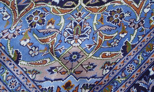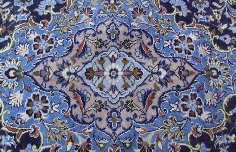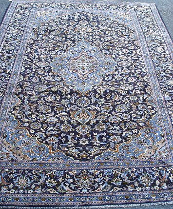 HAND WOVEN ORIENTAL CARPET: Approx. 8'6'' x 11'8'', 100% wool, lovely blue ground with border and center medallion.