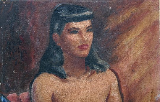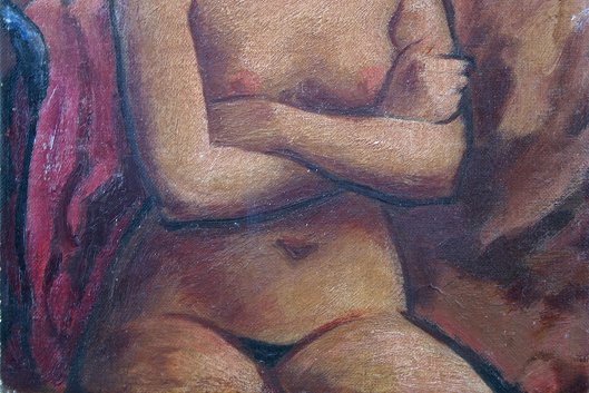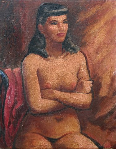 KUHN, Walter, (American, 1880-1949): Seated Nude, O/CB, 10'' x 8'', SUL, dated 1947. Provenance - From the Ingersoll Estate, letters from the daughter of Walter Kuhn (Brenda) included. Est. $4000/6000**