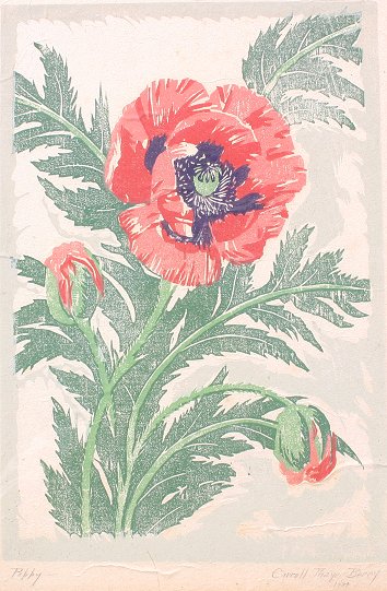 BERRY, Carroll Thayer (American, 1886-1978): ''Poppy'', Color Woodcut, 18 1/8'' x 12 1/4'', pencil signed lower right, dated 1934, pencil titled lower left, encased in a worn gilt frame, 24 1/2'' x 18 1/2''. Condition - Several spots of minor staining, appears to be laid.