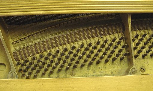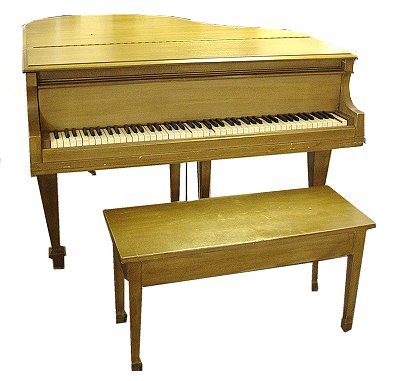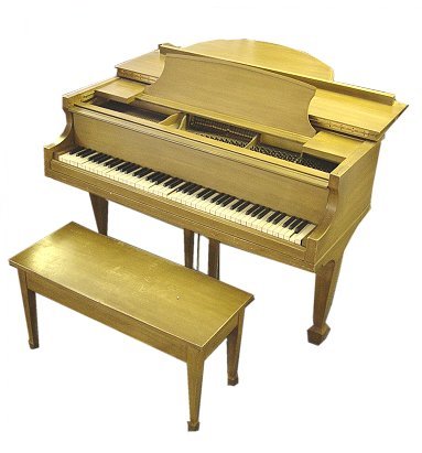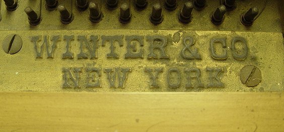 WINTER & CO BABY GRAND PIANO: Antiqued finish. Sold with the bench. Approx. 54''w., 5'l. Soundboard appears to be sound.