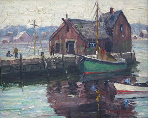 SHEETS, Nan Jane, (American, 1885-1976): Motif #1 Rockport, O/C, 8'' x 10'', signed lower right, encased in a worn period gilded and painted frame, 11 1/2'' x 13 1/2''.