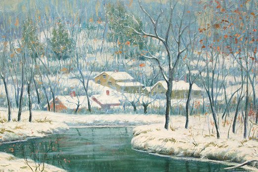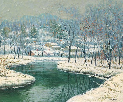 SEAVEY, Paul F, (American, 20th C.): ''Bucks County Winter'', landscape, O/C, 26'' x 30'', SLR Paul F. Seavey, dated 1953