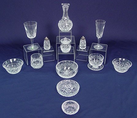 LARGE COLLECTION OF SIGNED WATERFORD CRYSTAL: Approx. 28 pc. to include a 7 1/2'' vase, 6 shrimp cocktails, mustard, 4 5 1/4'' bowls, 5 tumblers 3 1/2''h., 6 wine goblets, and a champagne flute. Combination of patterns.