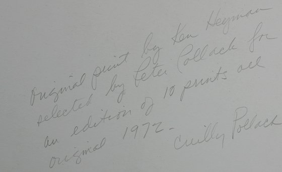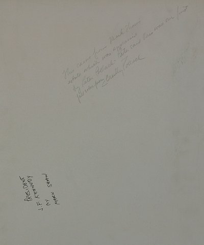 LARGE LOT OF PHOTOGRAPHS: (1) Heyman, Ken, (American, 20th C), ''River Scene, Enugu, Nigeria, 1963'', 14 1/4'' x 19 3/4''. Excerpt from Creilly Pollock verso indicates that this was selected by Peter Pollock of Abrams Original Editions for an edition of 10 prints in 1972. (2) Shaw, Mark, (American, 1922-1969), John F. Kennedy, 19 1/4'' x 15 3/8''. Collection of Peter Pollack (3) Peter Pollack, Dedicated lower right and illegibly signed from Fred?, 14'' x 11''. (4)Celebrated Photographer Izis (Israel Bidermanas), 5 3/8'' x 4 1/8'', inscribed lower right ''Photo of Izis'' and verso Izis with illegible markings from the Peter Pollack collection. Condition - Scratches to gloss, enhanced area hairline, and minor loss of film in left margin, mounted to board. (5) Huffman, Laton Anton, (American, 1854-1931), ''Mandan Earth Lodges'', 5'' x 7'', Huffman photo stamped lower right and lower left. Condition - Creases running vertically from top to bottom, some writing on the back, from the Peter Pollack collection