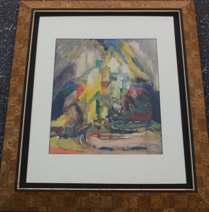 CORASICK, William, (American, 1907-): An abstract city scene, W/C, sight size, 17'' x 14'', signed lower right, professionally matted and framed in a cork veneer, some minor wear to the corners and edges, 32'' x 27''.