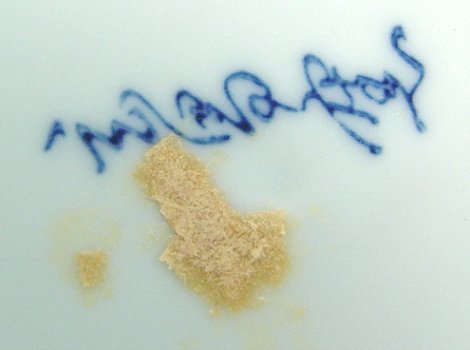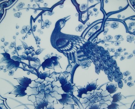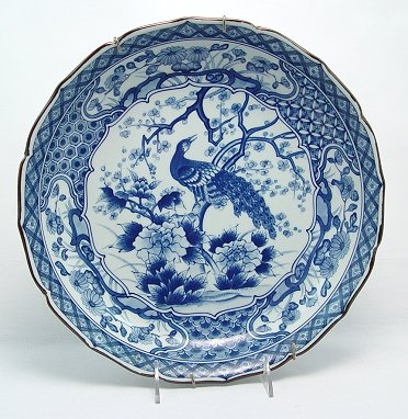 BLUE AND WHITE IMARI CHARGER: 12 1/4'' dia. shallow bowl or charger. Blue character marks on the underside. No chips or cracks.