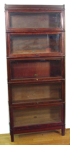 MAHOGANY FIVE SECTION STACKING BOOKCASE: Hale Furniture of Herkiam NY. 80''h. x 34 1/4''w. x 11''.