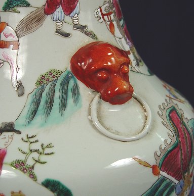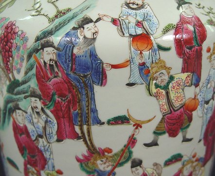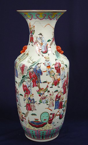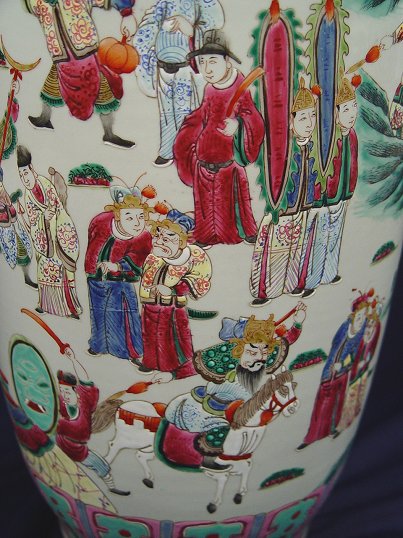 ROSE FAMILLE VASE: Off white ground decorated with genre scenes of varying activities. Actual age unknown. Approximately 23'' height and 10'' diameter. Est. $200/300**
