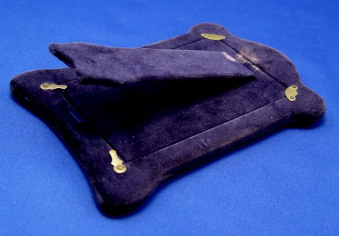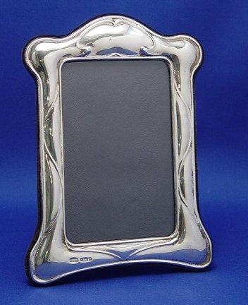 ART NOUVEAU BIRMINGHAM STERLING PHOTO FRAME: Hallmarks indicate 1913, maker JB Ld. Velvet, easel back. Approx. 8'' x 5 1/2''. Holds a 5 1/4'' x 3 1/4'' photo.
