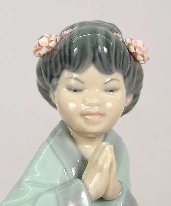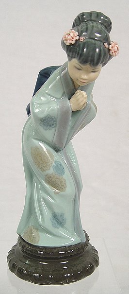 LLADRO FIGURINE ''SAYONARA'': Retired, #4989, 10 1/4''h., one petal broken on right side of head.