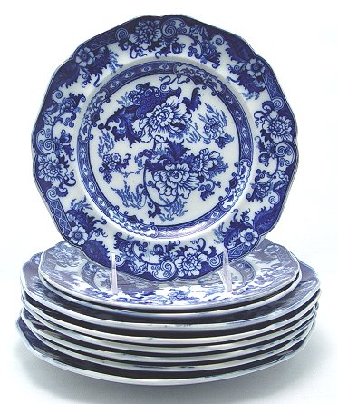 TEN ENGLISH CAULDON BENTWICK FLOW BLUE PLATES: Seven are 10'' dia, three are 8 3/4'' dia.