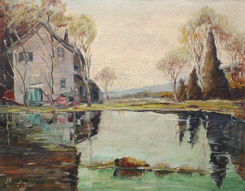 BONDRA, Mary, (American, 20th C): ''Spring'', O/CB, 16'' x 20'', signed lower left, titled verso, marked ''painted by Mary Bondra, 1941'' verso, bears a Hatfields Color Shop, Boston, Rockport, Gloucester label verso.