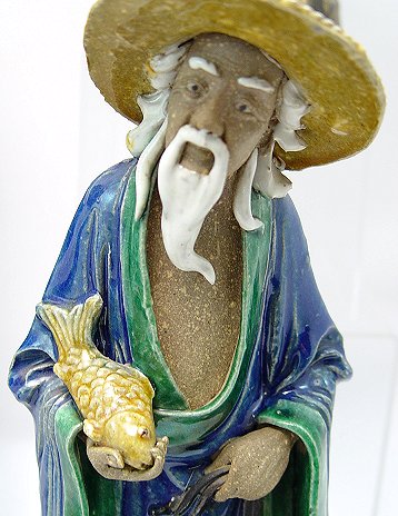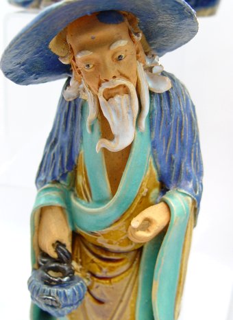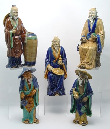 GROUP OF 5 LARGE MUDMEN: Vintage collection of polychrome figures made in China of native clay or mud. 10 - 11''h.
