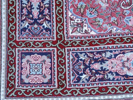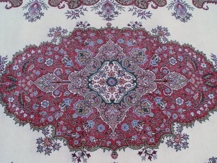 HAND MADE TURKISH LADIK CARPET: Approx. 11'6'' x 8'4'', lovely carpet with cream ground and polychrome decoration. Turkish carpets are woven by a single weaver.