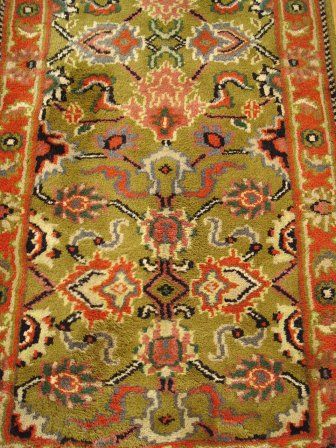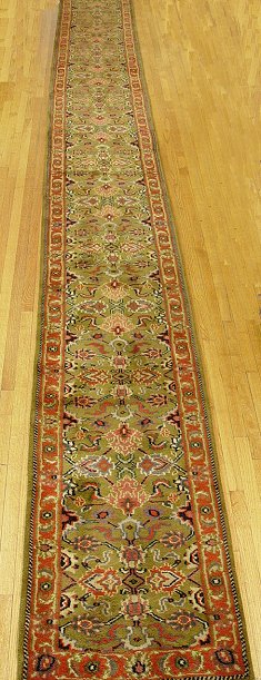 HAND MADE PERSIAN RUNNER: Approx. 23'4'' x 28'', olive green ground.