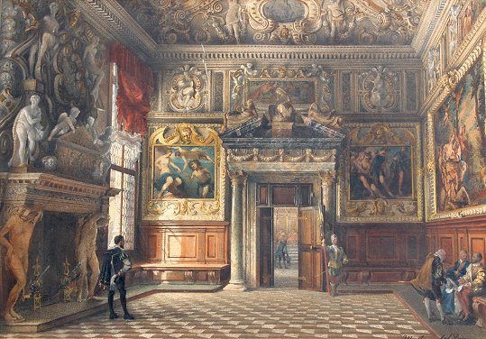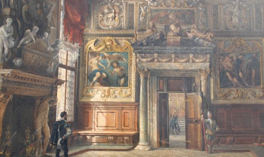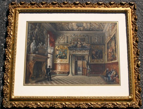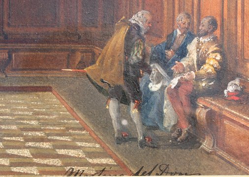 DEL DON, Martino, (Italian, 19th C): Renaissance interior with figures, W/C, sight size 12 1/2'' x 18 1/4'', signed lower right, encased in a later embossed gilt frame, 21 1/2'' x 26 1/2''.