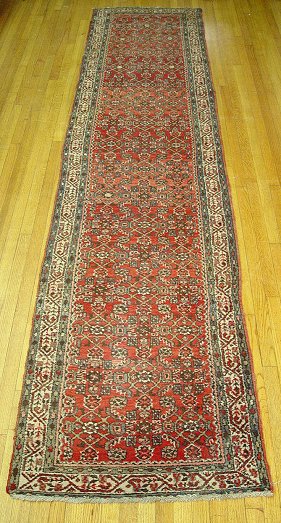 HAND WOVEN WOOL ORIENTAL CARPET RUNNER: Approx. 153'' x 34''.